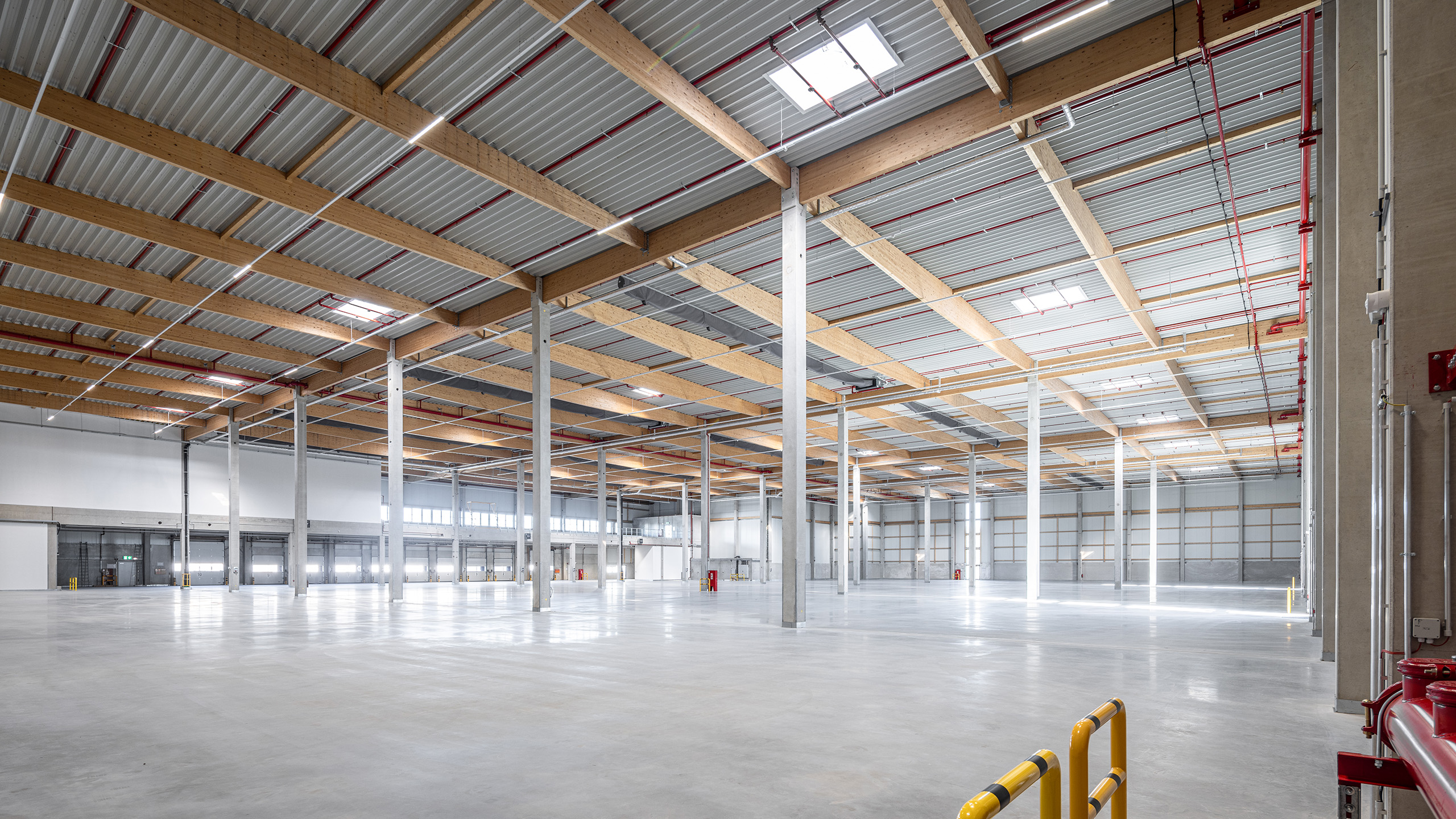Das Projekt umfasst rund 19.500 m² moderne Logistik- und Industriefläche mit Mezzanin-Büros. Die Immobilie ist in zwei Units gegliedert, die jeweils flexibel in zwei Mietbereiche unterteilt werden können – eine Grundlage für langfristige Nutzungsvielfalt. Die lichtdurchfluteten Treppenhäuser mit großzügigen PR-Fassaden vermitteln einen einladenden ersten Eindruck.